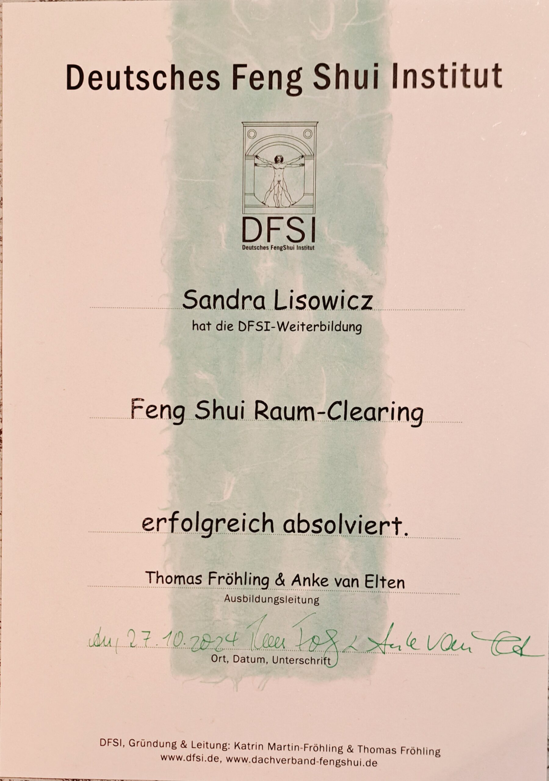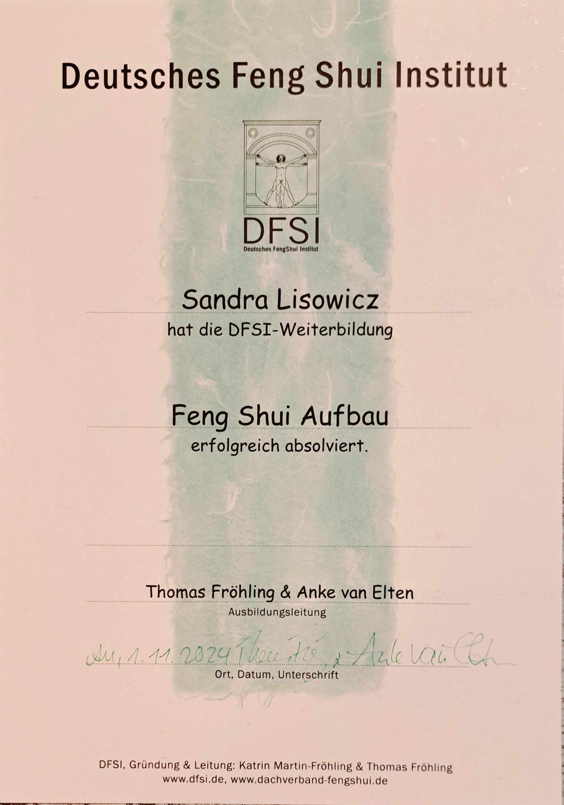 Chris Robb2025-04-24Trustindex verifies that the original source of the review is Google. Sandra was a joy to work with and always went the extra mile with ongoing support and ideas. We were delighted with the outcome of her consulting which without doubt helped change the energy and look of our home. Emilia Benz2025-04-08Trustindex verifies that the original source of the review is Google. Sandra hat mir unglaublich wertvolle Impulse für meine Räume gegeben, und ich bin begeistert von den Veränderungen! Als Selbstständige hatte ich mich ursprünglich einfach gefreut, ein eigenes kleines Homeoffice-Zimmer zu haben, doch nach etwa eineinhalb Jahren spürte ich, dass etwas nicht stimmte. Die Energie floss nicht richtig, ich fühlte mich eingeengt und mir fehlte der Weitblick – sowohl räumlich als auch in meinem Business. Sandra hat mir durch ihre Beratung sehr klar gezeigt, dass mein Büro energetisch ungünstig positioniert war. Sie erklärte, dass die Kunden- und Geldenergie dort nicht fließen konnte und warum ich mich intuitiv ins Wohnzimmer an den größeren Tisch mit mehr Ausblick setzte. Außerdem machte sie mich darauf aufmerksam, wie wichtig andere Räume – wie z.B. Badezimmer – energetisch für mein Wohlbefinden und meine Produktivität sind. Ihre Ideen waren leicht umsetzbar, benötigten kein großes Budget, sondern vielmehr eine bewusste, klare Ausrichtung. Besonders berührt hat mich ihre kreative Idee, im Gäste-WC eine kleine, persönliche Oase zu schaffen – mit indischen Elementen, da ich mich energetisch mit Indien verbunden fühle. Im Schlafzimmer erhielt ich ebenfalls einfache, aber wirksame Tipps für besseren Schlaf. Ich habe dadurch erkannt, dass ich nicht den Umständen folgen sollte, sondern meine Räume bewusst so gestalte, dass sie meinen Weitblick und meine Vision unterstützen. Seit der Umsetzung fühle ich mich deutlich wohler, klarer und energetischer. Das wirkt sich unmittelbar positiv auf mein Business und mein tägliches Arbeiten aus. Ich kann Sandra jedem empfehlen, der erkennt, dass Räume nicht nur Dekoration, sondern kraftvolle Quellen für persönliche und geschäftliche Entwicklung sind. Herzlichen Dank für deine wunderbare Beratung, Sandra! Anna Maynert2025-01-15Trustindex verifies that the original source of the review is Google. Ich habe das Feng Shui Raumcoaching von Sandra zum Geburtstag von meinem Mann geschenkt bekommen. Das war das beste Geschenk meines Lebens. Sandra versprüht so eine Lebensfreude und Motivation, das allein das schon so auf mich übergesprungen ist, dass ich endlich die Energie und Motivation hatte an Ecken in unserem Haus zu gehen, in denen seit Jahren die Energie stagniert (so habe ich es gelernt von Sandra). Ausserdem habe ich in meinem Zimmer ganz bestimmte Bereiche aktiviert (u.a. meinen beruflichen Bereich9, der seitdem richtig ins Fließen gekommen ist. So habe ich in diesem Monat (der grad erst zur Hälfte vorbei ist) schon soviel Umsatz gemacht, wie sonst in 2 Monaten! Es funktioniert also wirklich! Aber das ist nicht alles, ich befinde mich erst am Anfang, doch das, was Sandra durch Ihr Coaching, ihre Expertise und ihre unglaubliche Strahlkraft geschafft hat, ist, dass ich meine Berufung jetzt ganz klar habe und viel fokussierter daran arbeite. Ich habe soviel über meinen Raum, die Energie in meinem Raum und über mich gelernt... das ist einfach ganz großartig! Ich bin Sandra SEHR dankbar für ihr Wirken. Sie ist eine Raum-Magierin und ich kann jedem (wirklich jedem!) das Raumcoaching nur wärmstens ans Herz legen. Vielen, vielen Dank liebe Sandra, ich freue mich unglaublich darauf dein liebevoll gestaltetes Workbook weiter durchzuarbeiten <3! Von Herzen DANKE! Anna Annette Borchers2025-01-06Trustindex verifies that the original source of the review is Google. Wie toll kann ein Mensch eigentlich sein? Sandra Li hat mich liebevoll wachgerüttelt und mich daran erinnert, was mir wichtig ist. Mit ihrer Hilfe konnte ich erkennen, was gehen darf, was nicht länger zu mir passt. Sie hat mich inspiriert an mich und meine Wünsche zu glauben. Und was soll ich sagen, mit ihrer Aktivierung meiner RÄUME, habe ich mich neu fokussiert und nicht aufgegeben, falls es mal etwas schwieriger wurde. Durch die Li-Methode bin ich immer wieder über meine RÄUME in die Verbindung mit meinen Wünschen gegangen und halte nun meine beiden veröffentlichen Bücher stolz in meinen Händen. Mein Gefühl sagt mir, dass das erst der Anfang einer fantastischen Reise ist. Und sie ist leichter, mit dem Wissen, dass Sandra Li mich weiterhin unterstützt, falls ich dann doch einmal in alte Handlungsmuster fallen sollte. H2024-12-07Trustindex verifies that the original source of the review is Google. Sandra ist eine empathische, positive und motivierende Frau, die kompetent den Prozess einleitet und begleitet. Die Schatzkarte ich ein geniales Instrument um Sachverhalte besser zu verstehen. Mir wurde während des Settings bewusst, wie viel bereits da ist. Sandra ist eine wertvolle Begleiterin mit tiefem Wissen. Sie macht Verbindungen sichtbar. Ich verstehe nun, warum gerade diese Wohnung / Immobilie mich gerufen hat. Ihr Buch liest sich leicht. Es inspiriert bewusst Veränderungen anzugehen auf räumlicher, persönlicher und mentaler Ebene und so einen stärken Bezug zur eigenen Freude herzustellen. Es ist ein Prozess. Ich kann Sandra zu 100 % empfehlen. Sie lebt ihre Berufung. Chapeau! Danke. Mathias2024-07-08Trustindex verifies that the original source of the review is Google. Sandras Energie und Lebensfreude, ihre Kompetenz und sichere Konsequenz haben unser Zuhause verändert und vor allem Denkprozesse angestoßen. Wir fühlen uns pudelwohl und freuen uns auf die noch kommenden Veränderungen. Danke, liebe Sandra! pam full2024-07-03Trustindex verifies that the original source of the review is Google. Sandra Li - die Ganzheitliche Raumberatung hat unser Leben verändert Die Online-Beratung von Sandra war eine transformative Reise d